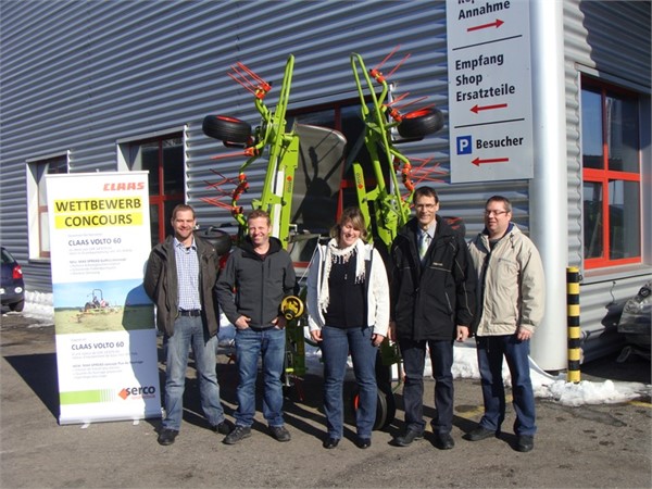 Der Gewinner unseres AGRAMA-Wettbewerbs steht nun fest. Den Kreiselheuer CLAAS VOLTO 60 gewonnen hat die Familie Katrin + Jvo Bertsch aus Degersheim. Die Übergabe durchgeführt haben Manuel Frei, Gebietsverkaufsleiter CLAAS Ostschweiz, Markus Aebi, Leiter Innendienst und Thomas Linder, Produktmanager CLAAS Futter- und Grosserntemaschinen. Wir gratulieren der Familie Bertsch ganz herzlich und wünschen ihnen viel Freude mit dem VOLTO 60!
