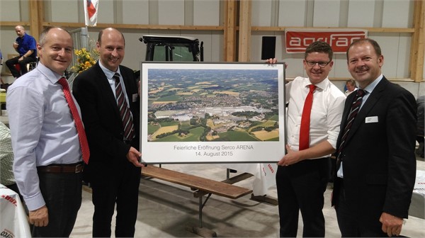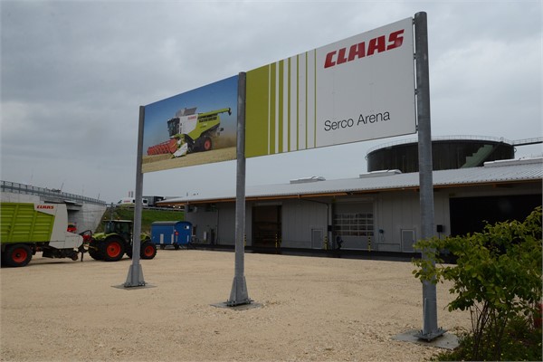 Zur Arena gehört eine riesige Halle mit einem Training Center für landwirtschaftliche Maschinen, Büros und einer Teststrecke.
